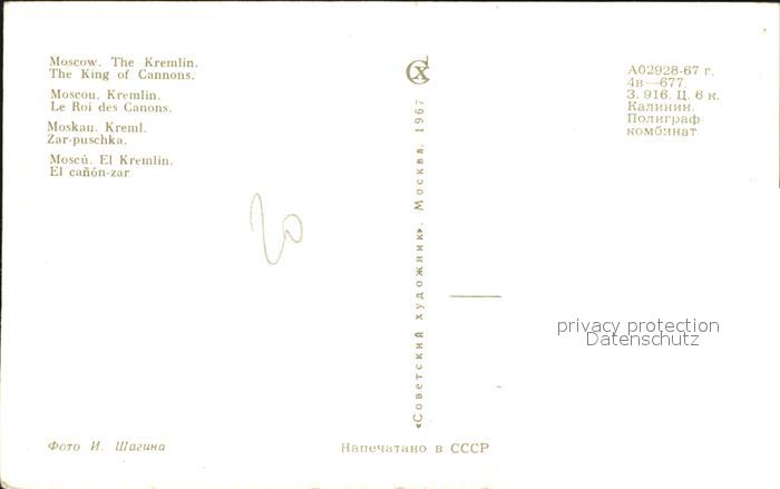 Moscou Moskau Kremlin King of Cannons postalisch nicht gelaufen Erhaltung siehe scans