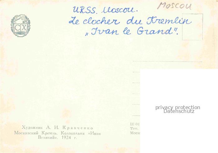 74009068 Moscou Moskau Moscow RU Le clocher du Kremlin Ivan le Grand Kuenstlerkarte postalisch nicht gelaufen Erhaltung siehe scans [FriedD77] KatCode: 11440