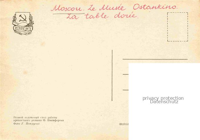 74013633 Moscou Moskau Moscow RU Musée Ostankino La table dorée postalisch nicht gelaufen Erhaltung siehe scans [FriedD77] KatCode: 11440