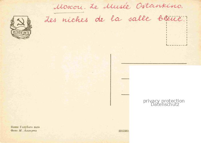 74013622 Moscou Moskau Moscow RU Musée Ostankino les niches de la Salle bleu postalisch nicht gelaufen Erhaltung siehe scans [FriedD77] KatCode: 11440