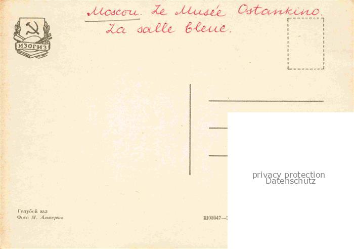 74013621 Moscou Moskau Moscow RU Musée Ostankino Salle bleu postalisch nicht gelaufen Erhaltung siehe scans [FriedD77] KatCode: 11440