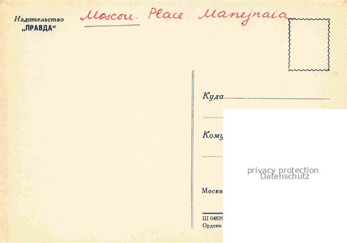 74013634 Moscou Moskau Moscow RU Place Manejnaia postalisch nicht gelaufen Erhaltung siehe scans [FriedD77] KatCode: 11440