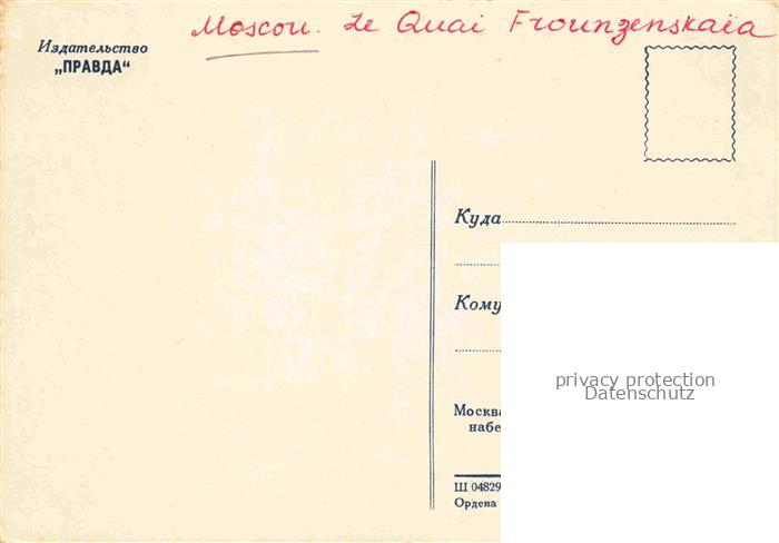 74013620 Moscou Moskau Moscow RU Quai Frounzenskaia postalisch nicht gelaufen Erhaltung siehe scans [FriedD77] KatCode: 11440