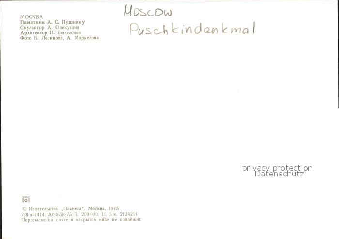 Moscou Moskau Puschkindenkmal postalisch nicht gelaufen Erhaltung siehe scans