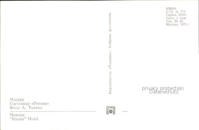 Moscou Moskau Rossia Hotel postalisch nicht gelaufen