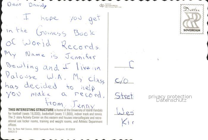 72293204 Moscow Idaho Kibbie Dome University postalisch nicht gelaufen Erhaltung siehe scans KatCode: 14140140000000