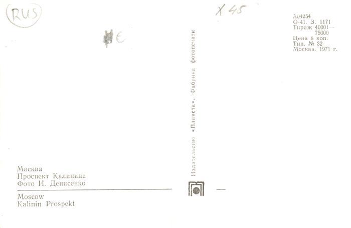 73970854 MOSCOW Moskau Moscou RU Kalinin Prospekt postalisch nicht gelaufen Erhaltung siehe scans [FriedD77] KatCode: 11440