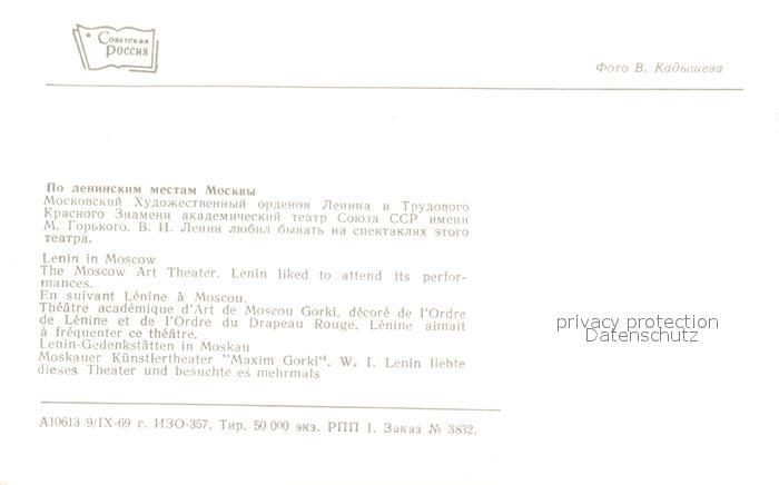 13597703 MOSCOW Moskau Moscou RU Lenin Gedenkstaetten Kuenstlertheater Maxim Gorki postalisch nicht gelaufen Erhaltung siehe scans [WerneD78] Wern Katcode 11440