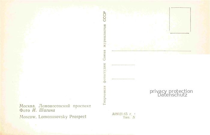 74024490 MOSCOW Moskau Moscou RU Lomonosovsky Prospect postalisch nicht gelaufen Erhaltung siehe scans [FriedD77] KatCode: 11440