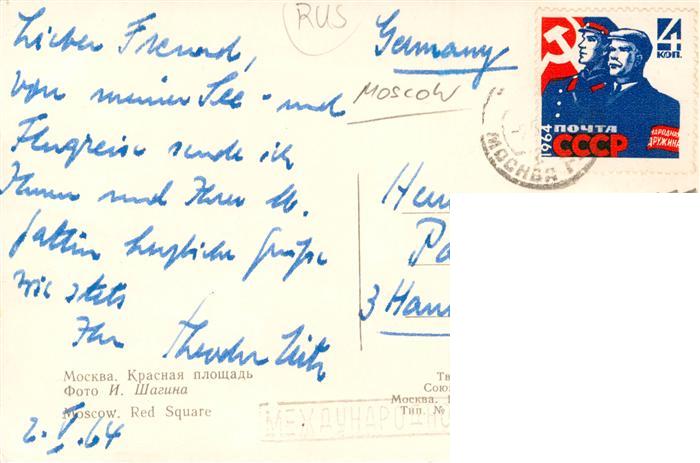 73970771 old postcard MOSCOW Moskau Moscou RU Red Square postalisch gelaufen Erhaltung siehe scans [FriedD77] KatCode: 11440