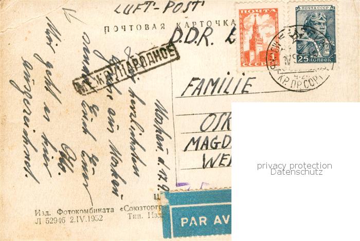 old postcard MOSCOW Moskau Moscou RU Strassenpartie postalisch gelaufen Erhaltung siehe scans [FriedD77]