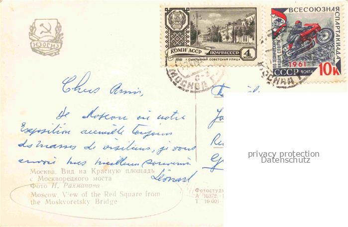 74028105 old postcard MOSCOW Moskau Moscou RU View of the Red Square from the Moskvoretsky Bridge postalisch gelaufen Erhaltung siehe scans [FriedD77] KatCode: 11440
