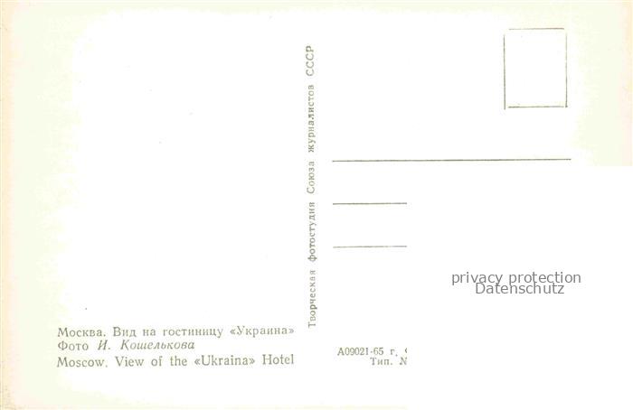 74024486 MOSCOW Moskau Moscou RU View of the Ukraina Hotel postalisch nicht gelaufen Erhaltung siehe scans [FriedD77] KatCode: 11440