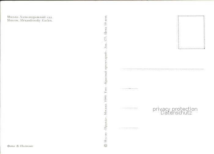 Moscow Moskva Alexandrovsky Garden postalisch nicht gelaufen