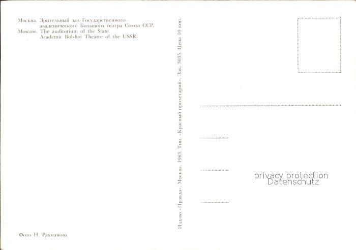 Moscow Moskva Auditorium of the State Academic Bolshoi Theatre of the UssR postalisch nicht gelaufen Erhaltung siehe scans