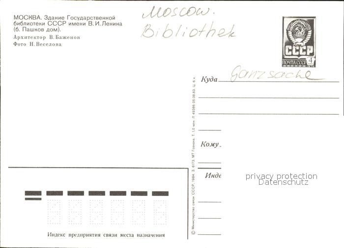 Moscow Moskva Bibliothek postalisch nicht gelaufen Ganzsache (eingedruckte Briefmarke) Erhaltung siehe scans