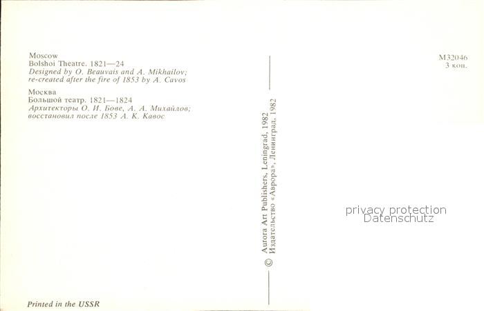 Moscow Moskva Bolshoi Theatre postalisch nicht gelaufen Erhaltung siehe scans