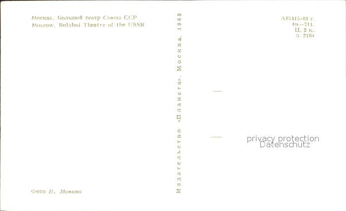 Moscow Moskva Bolshoi Theatre of the UssR postalisch nicht gelaufen Erhaltung siehe scans