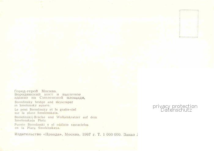 Moscow Moskva Borodinsky bridge Smolensky square postalisch nicht gelaufen Erhaltung siehe scans [NatalD47]