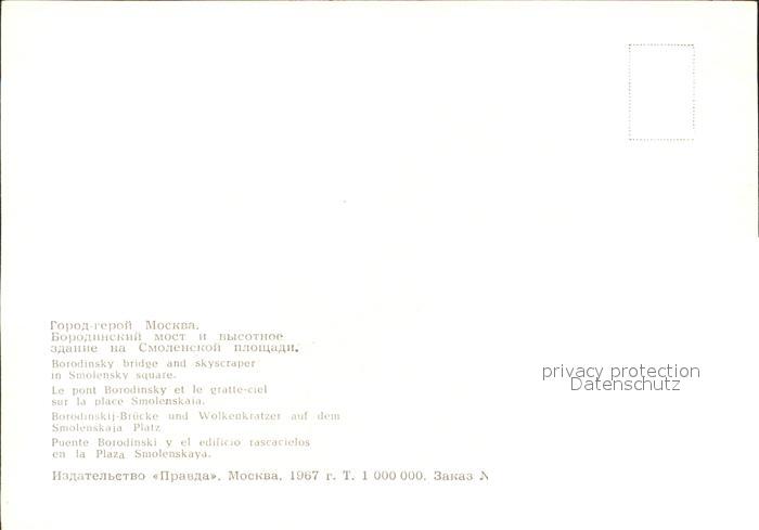 Moscow Moskva Borodinsky Bruecke Hochhaus Smolenskij Platz postalisch nicht gelaufen Erhaltung siehe scans