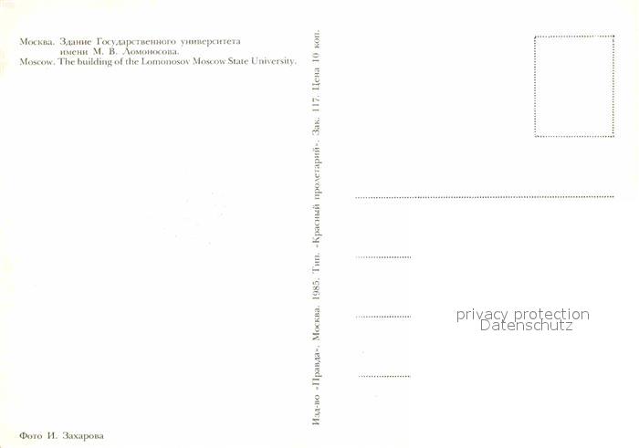 Moscow Moskva Building of the Lomonosov Moscow State University postalisch nicht gelaufen Erhaltung siehe scans [NatalD47]