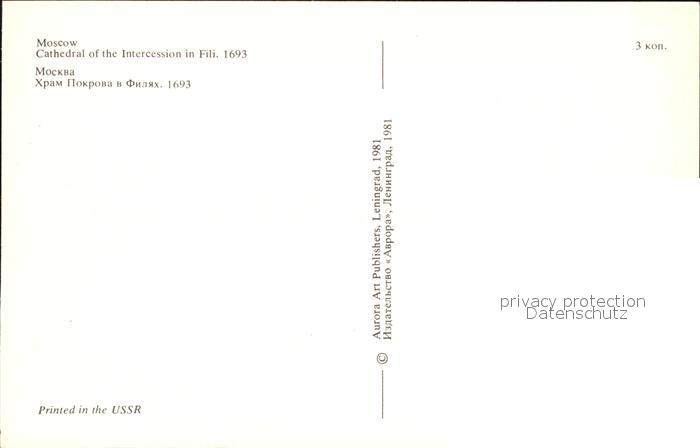 Moscow Moskva Cathedral of the Intercession in Fili postalisch nicht gelaufen Erhaltung siehe scans