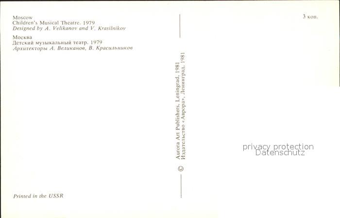 Moscow Moskva Childrens Musical Theatre postalisch nicht gelaufen Erhaltung siehe scans