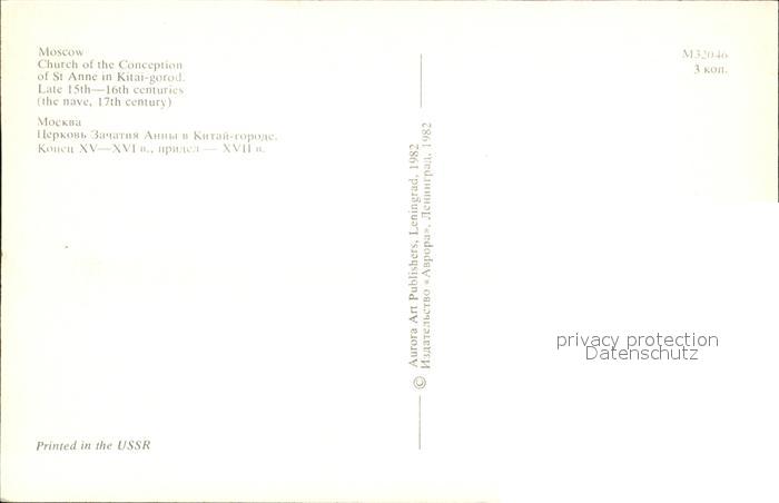Moscow Moskva Church of the Conception of St Anne in Kitai gorod postalisch nicht gelaufen Erhaltung siehe scans