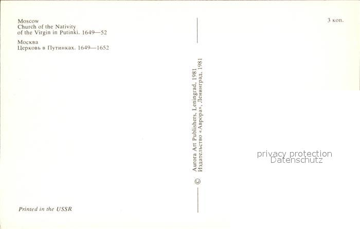 Moscow Moskva Church of the Nativity of the Virgin in Putinki postalisch nicht gelaufen Erhaltung siehe scans