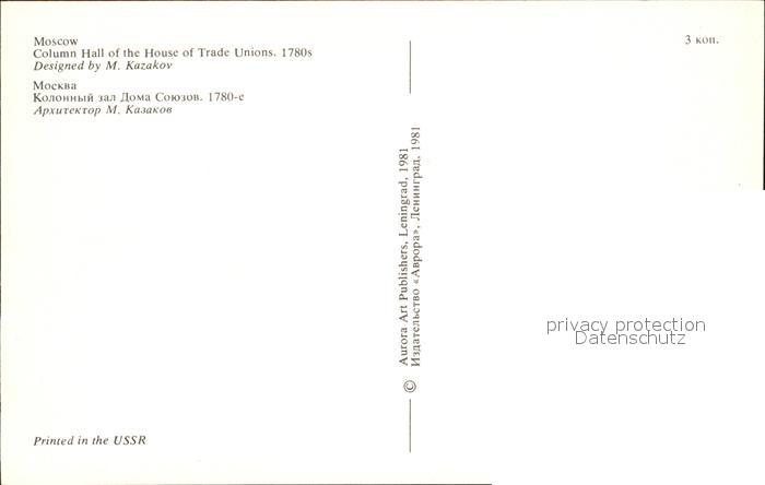 Moscow Moskva Column Hall of the House of Trade Unions postalisch nicht gelaufen Erhaltung siehe scans