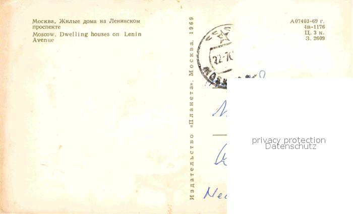 alte Postkarte Moscow Moskva Dwelling houses on Lenin Avenue postalisch gelaufen Erhaltung siehe scans [NatalD47]