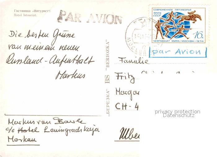 old postcard Moscow Moskva Hotel Intourist postalisch gelaufen Erhaltung siehe scans [NatalD47]