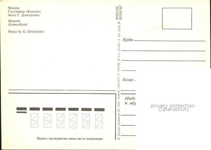 Moscow Moskva Hotel Kosmos postalisch nicht gelaufen Erhaltung siehe scans [NatalD47 kt111box]