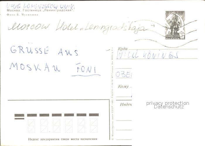 old postcard Moscow Moskva Hotel Leningradskaja postalisch gelaufen Erhaltung siehe scans