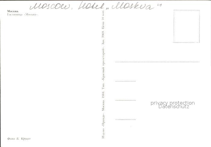 Moscow Moskva Hotel Moskva postalisch nicht gelaufen Erhaltung siehe scans