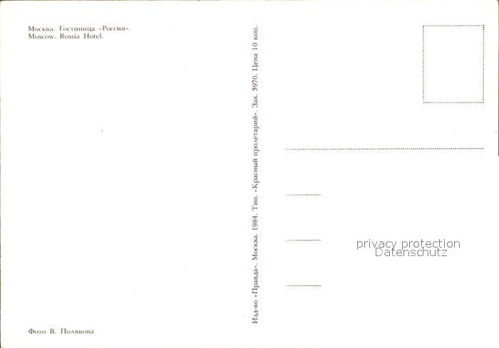 Moscow Moskva Hotel Rossia postalisch nicht gelaufen Erhaltung siehe scans