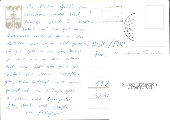 old postcard Moscow Moskva Hotel Rossija postalisch gelaufen Erhaltung siehe scans [NatalD47]