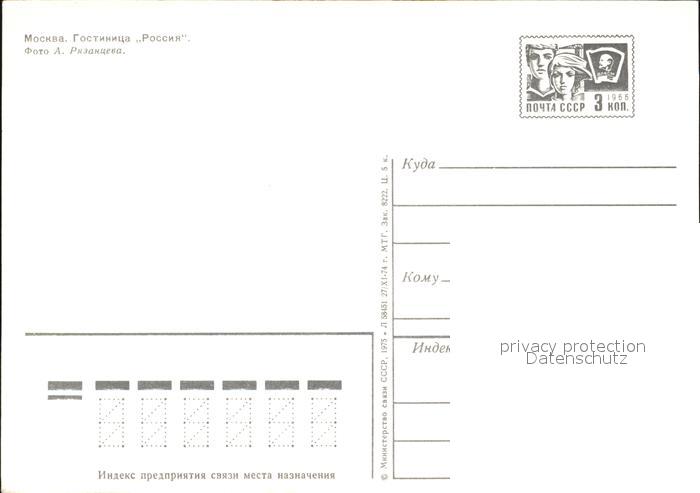 Moscow Moskva Hotel Rossija postalisch nicht gelaufen Ganzsache (eingedruckte Briefmarke) Erhaltung siehe scans [NatalD47]