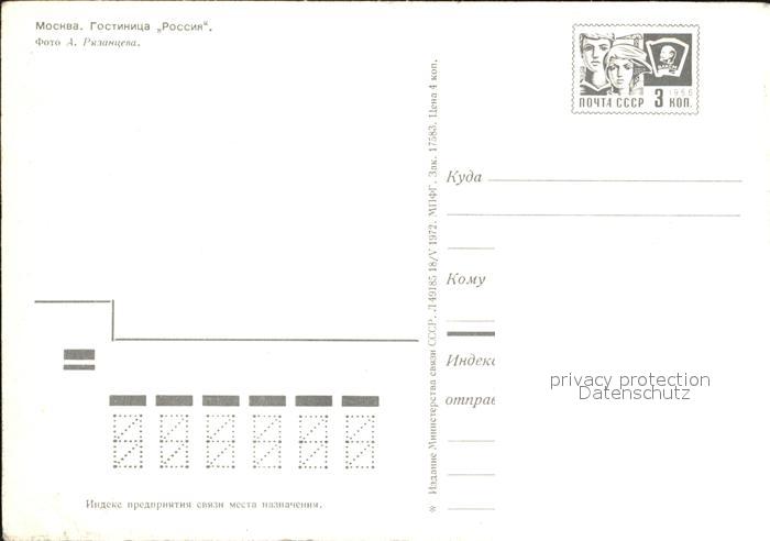 Moscow Moskva Hotel Rossija postalisch nicht gelaufen Ganzsache (eingedruckte Briefmarke) Erhaltung siehe scans [NatalD47 kv013box]