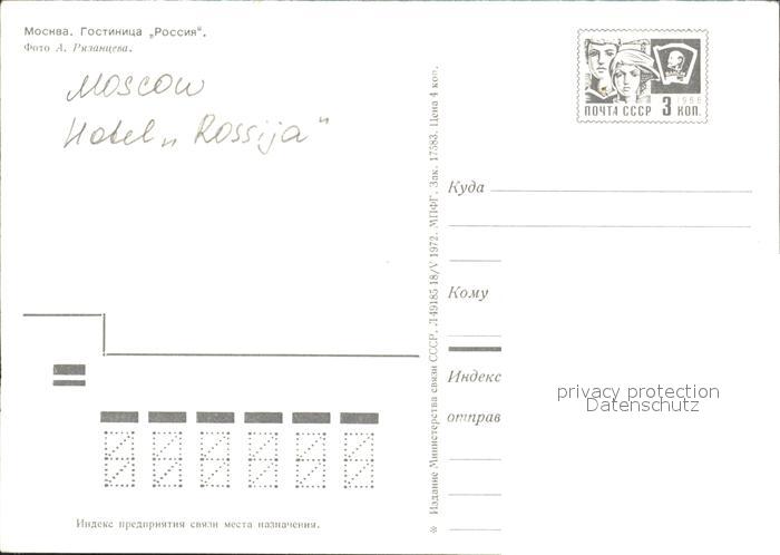 Moscow Moskva Hotel Rossija postalisch nicht gelaufen Erhaltung siehe scans