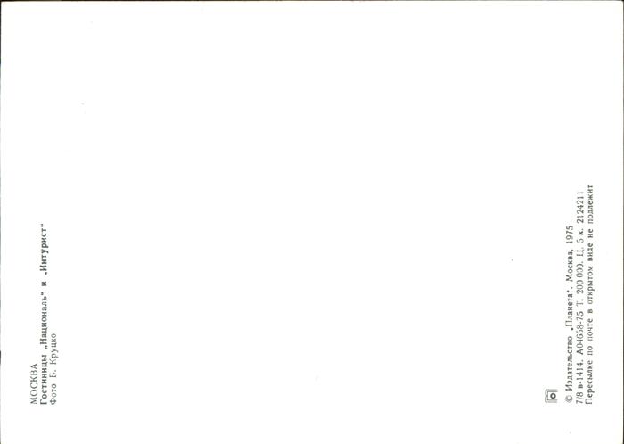 Moscow Moskva Intourist Hotel postalisch nicht gelaufen Keine Postkarte (siehe scan) Erhaltung siehe scans