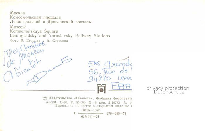 alte Postkarte Moscow Moskva Komsomolskay Square Leningradsky Yaroslavsky Railway Stations postalisch gelaufen Erhaltung siehe scans [NatalD47]