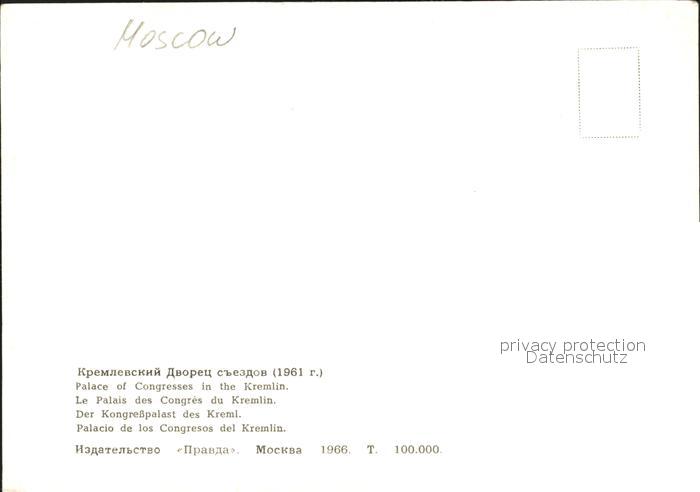 Moscow Moskva Kongresspalast des Kreml postalisch nicht gelaufen Erhaltung siehe scans