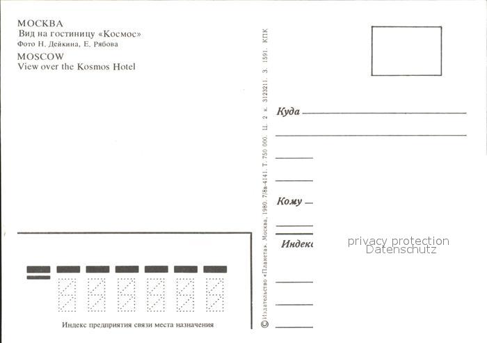 Moscow Moskva Kosmos Hotel postalisch nicht gelaufen Erhaltung siehe scans