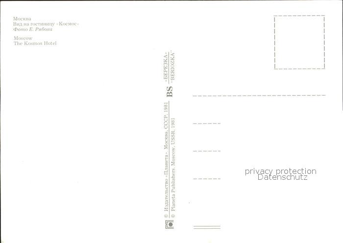 Moscow Moskva Kosmos Hotel postalisch nicht gelaufen Erhaltung siehe scans
