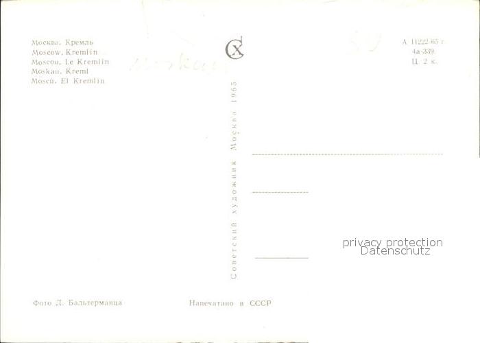 Moscow Moskva Kremlin postalisch nicht gelaufen Erhaltung siehe scans [NatalD47]