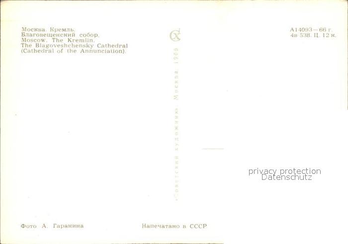 Moscow Moskva Kremlin Blagoveshchensky Cathedral postalisch nicht gelaufen Erhaltung siehe scans [NatalD47 kv013box]