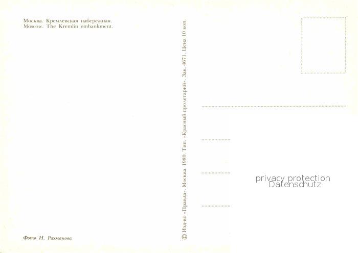 Moscow Moskva Kremlin embankment postalisch nicht gelaufen Erhaltung siehe scans [NatalD47]