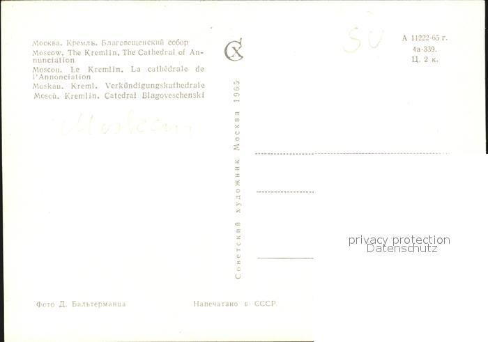 Moscow Moskva Kremlin Kathedrale postalisch nicht gelaufen Erhaltung siehe scans [NatalD47]