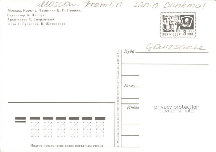 Moscow Moskva Kremlin Lenin Denkmal postalisch nicht gelaufen Ganzsache (eingedruckte Briefmarke) Erhaltung siehe scans